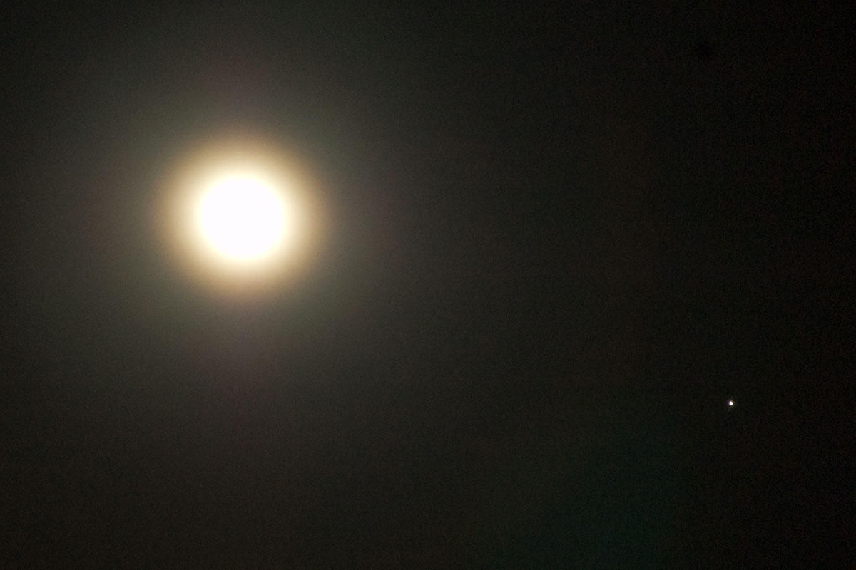 Two days ago, the almost full moon had a meeting with Jupiter. And I was there to take a group photo of them.
