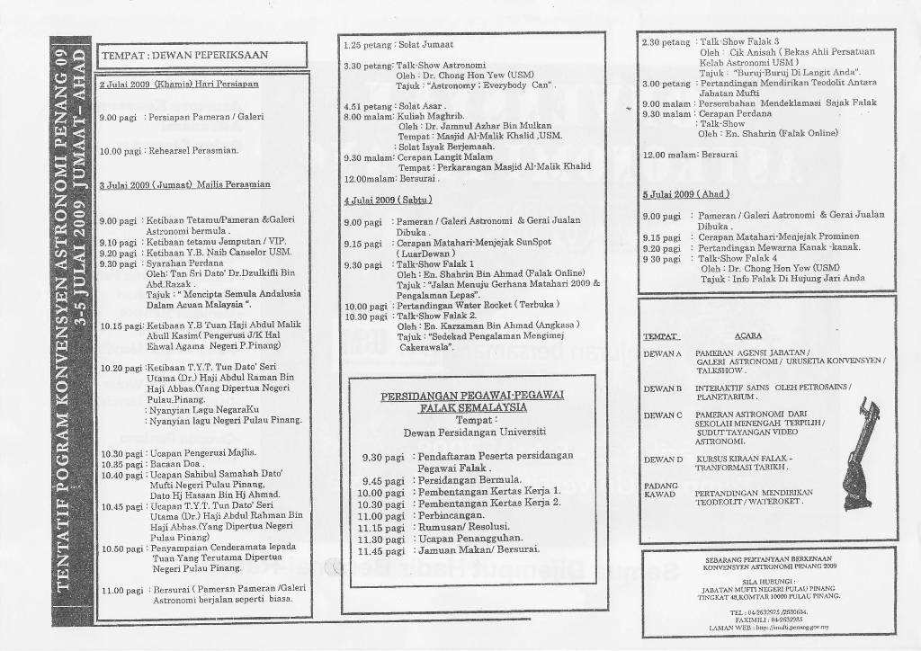 •July 2, 2009 • Leave a CommentJabatan Mufti Negeri Pulau Pinang and Universiti Sains Malaysia (USM) is organising the Penang Astronomy Convention 2009 this weekend starting tomorrow.