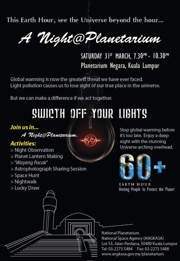 And if you are in Kuala Lumpur city area this Saturday, why not head over to Planetarium Negara to join their Light Pollution Campaign in conjunction with Earth Hour starting from 7:30 pm to 10:30 pm? They are organising a lot of fun activities and would like to invite all to join them.